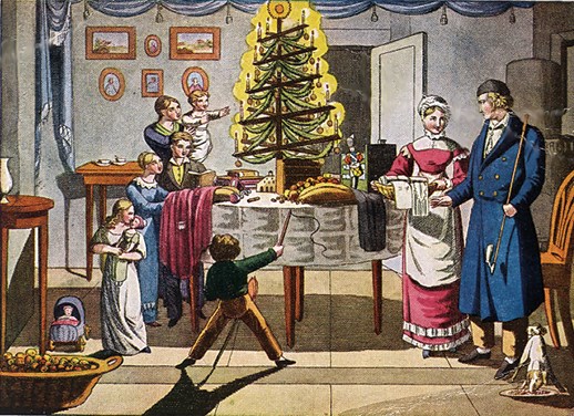 Известно, что с начала XIX века украшенные рождественские елки стали устанавливаться в домах петербургских немцев, перенесших на новую родину обычаи своей страны. В это время данная традиция постепенно стала распространяться по всему миру, и Россия не составила здесь исключения. Врастание немецкой елки в русскую почву было весьма успешным и стремительным во многом благодаря длительной, постоянной и устойчивой трансляции в российскую среду других немецких культурных символов. Внедрение их в российский детский мир осуществлялось через школу, учителей, учебники, детские игрушки, детскую литературу и т. д. Наличие елки в доме свидетельствовало о приобщенности к европейской культуре, что весьма поднимало социальный статус хозяев в глазах ближайшего окружения. Посещая благословенную Европу и весьма часто – Германию, русские путешественники могли наблюдать, сравнивать и воспринимать, а воспринимая – заимствовать. Результатом такого «культурного заимствования» и явилось приложение рождественской елки и многих ее атрибутов к российской культурной среде, за которым последовало ее постепенное укоренение и «обрусение», выразившееся в обретении ею ряда своеобразных «национальных» черт.