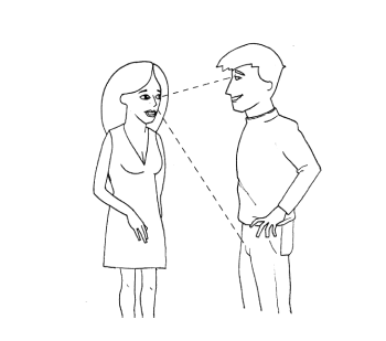 Подходя друг к другу, люди быстро смотрят на среднюю часть тела, чтобы определить пол визави. Затем этот взгляд повторяется; на этот раз – с целью определения уровня заинтересованности. Такой взгляд называют интимным. Для демонстрации своей заинтересованности друг в друге им пользуются и мужчины, и женщины. Заинтересованный партнер возвращает ответный взгляд.