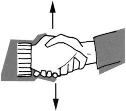 Когда встречаются два энергичных, властных человека, рукопожатие превращается в своеобразную силовую игру. Каждый стремится перевести руку собеседника в подчиненное положение. В результате обе руки остаются в вертикальном положении, что сразу же создает атмосферу равенства и взаимного уважения. В таких обстоятельствах собеседники не уступают друг другу.