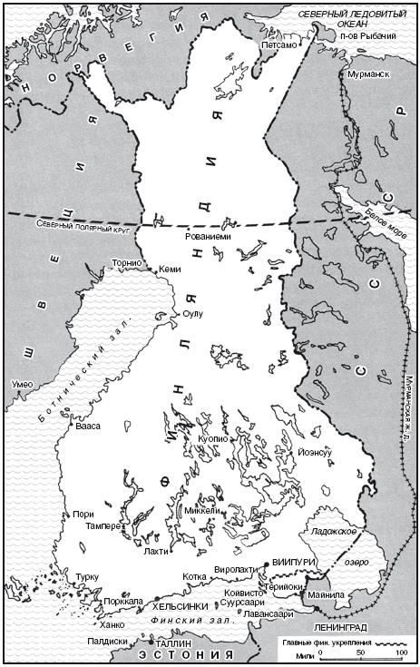 Кто воюет без причины,Сгоряча вступает в битву,Тот и жизнь в войне теряет,Тот в сраженье погибает…Руна XXXVIВ двадцать минут десятого утром 30 ноября 1939 года советский бомбардировщик, пролетая над Хельсинки, сбросил пропагандистские листовки. Через несколько минут другие самолеты в ходе первого из многих разрушительных налетов на Виипури, второй по величине город Финляндии, доставили куда более смертоносные послания1. Ранее в то роковое утро артиллерийские, танковые, пехотные и авиационные соединения Красной армии нанесли удары по многочисленным опорным пунктам вдоль 900-мильной советско-финской границы – от Петсамо на берегу Северного Ледовитого океана до района Териоки на берегу Финского залива. Застигнутые врасплох превосходящими силами противника, финские пограничники на крошечных пограничных заставах, большинство из которых даже танков никогда в своей жизни не видели, быстро погибали, попадали в плен или бежали…