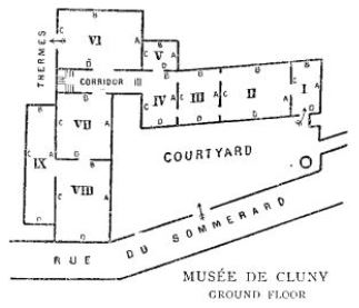 At Cluny the actual building forms one of the most interesting parts of the sight, and is in itself a museum. It is a charming specimen of a late mediæval French mansion; and the works of art it contains are of the highest artistic value. I am able briefly to describe only what seem to me the most important out of its many thousands of beautiful exhibits. At least two whole days should be devoted to Cluny – one to the lower and one to the upper floor. Much more, if possible.]
