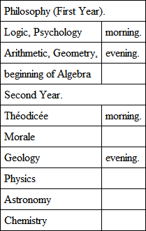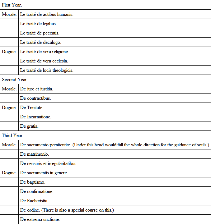 Sometimes, perhaps in half the dioceses of France, these two years of philosophy are contracted to one. The three years of theology are thus arranged: —