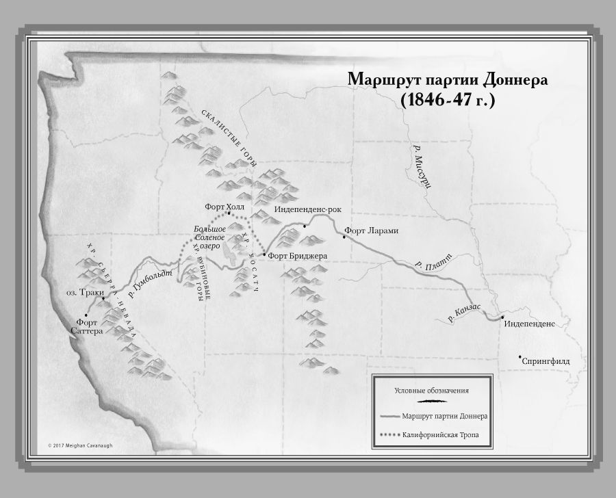Стэнтон с Брайантом знали друг друга не так уж давно, однако быстро успели сдружиться. Недавно, за Индепенденсом, штат Миссури, к партии, с которой шел Стэнтон, небольшому обозу из Иллинойса, состоявшему в основном из семейств Доннера с Ридом, примкнула еще одна, куда большая группа поселенцев под началом отставного военного Уильяма Рассела. Эдвин Брайант одним из первых участников партии Рассела подошел познакомиться и вообще потянулся к Стэнтону – вероятно, потому, что оба оказались холостяками, одиночками среди кучи семей.