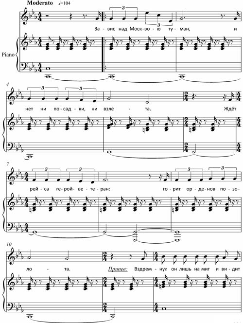 1. Завис над Москвою туман,И нет ни посадки, ни взлёта.Ждёт рейса герой-ветеран:Горит орденов позолота.Припев: Вздремнул он лишь на миг и видит яркий сон:Салюты, фейерверки в честь Победы…И как живых людей испепелял огонь,И смертный бой, какого мир не ведал:То Курская Дуга, то Курская Дуга,То огненная Курская Дуга…2. Заметно ресницы дрожат,Седой фронтовик опечален:О, сколько безусых ребятЗа Родину жизни отдали!..Припев.3. Бессмертья великих солдат,Потомки, достойными будьте!Пусть совесть и память не спят, —Героев войны не забудьте!Припев.То Курская Дуга, то Курская Дуга,То огненная Курская Дуга…