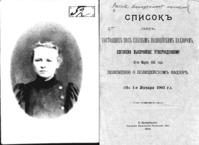 Фото 3. Фотокарточка Зинаиды Федоровны Жученко-Гернгросс в специальном издании Департамента полиции. Типография Министерства внутренних дел, 1903 г.