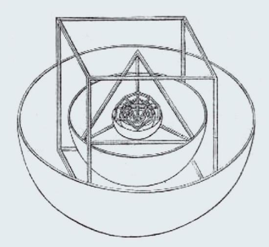 Кеплер показывает структуру планетных орбит на основе построения платоновых вписанных и описанных фигур. Так, если вокруг орбиты Земли, которая является общей мерой всех других орбит, описать додекаэдр, а вокруг додекаэдра – сферу, получим орбиту Марса, соответствующую такой сфере. Если вокруг орбиты Марса, связанной с описанной сферой, описать тетраэдр, а вокруг тетраэдра – сферу, получится сфера орбиты Юпитера. Если вокруг орбиты Юпитера описать куб, а вокруг куба – сферу, получим сферу орбиты Сатурна. Вписанные в сферу орбиты Земли икосаэдр и сфера дают сферу орбиты Венеры. Наконец, если вписать в сферу орбиты Венеры октаэдр и в него вписать сферу, то получим орбиту Меркурия. В ряде статей автор объясняет получаемые таким образом построения орбит известных во времена Кеплера планет, а также правило Тициуса – Боде наличием общей меры в виде длины энергетической стоячей волны, хотя данные понятия не были известны во времена Кеплера и Эйлера. Планетные расстояния в этом случае легко определяются из уравнения стоячей волны.