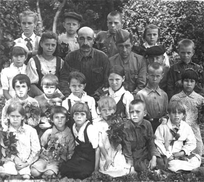 Чехировская начальная школа Попаснянского р-на Ворошиловградской обл., май 1946 г. 3-й класс. Стоит крайний справа Лошаков В. Г.