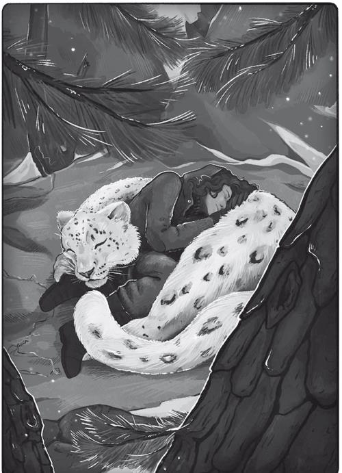 Ирбис перевернулся на спину, подставляя шею под ласковые руки и сложив широкие лапы у груди. Полузакрытые глаза излучали спокойствие и умиротворение. Тёплая шерсть приятно грела обветренную кожу. Сердце девушки сжалось: казалось, сейчас в целом свете у неё не было более близкого существа. Она наклонилась и бережно обняла снежного барса.