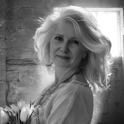 Профессионально занимается флористикой, есть свой цветочный магазин, поэтому всё творчество автора связано с цветами.