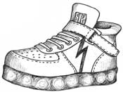 Ребята восхищенно перешептывались. Кроссовки и правда были суперские. Другого слова не подберешь. Серебристые, как сталь, и переливающиеся, и с черными глянцевыми вставками. И липучками вместо шнурков. И на толстой-толстой полупрозрачной подошве. И – главное! – каждый раз, когда их владелец ступал на пятку, подошва взрывалась россыпью разноцветных огоньков.
