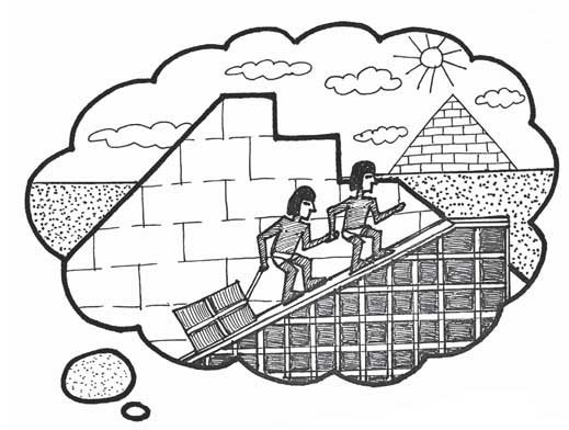 Ваня подумал. Вот если бы он уже был инженером, то наверняка сообразил бы, как передвинуть эту махину. Папа однажды рассказывал ему про египетские пирамиды, и эту историю Ваня запомнил очень хорошо. Про то, как древние египтяне строили их из гигантских каменных блоков весом по две-три тонны каждый. В те времена у людей не было ни подъемных кранов, ни других полезных машин. Но египтяне придумали разные хитрости, чтобы доставлять огромные известняковые «кирпичи» к месту строительства. Например, клали их на сани и волокли по песку, политому водой: по мокрому полозья скользят легче. А потом поднимали на нужный ярус пирамиды с помощью наклонных рамп и веревок.