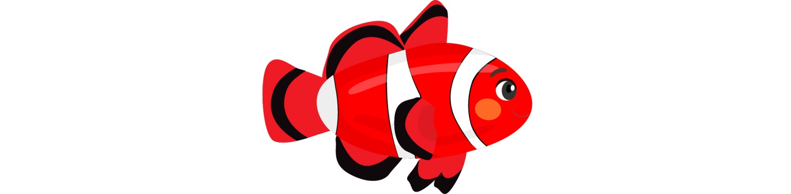 У неё был очень весёлый и добрый друг, похожий на маленького озорного клоуна. Потому что он одет в ярко-красный наряд с большими белыми и маленькими чёрными полосками. Посмотри, какой красивый! (ПРОВЕДИТЕ ПО БЕЛЫМ И ЧЁРНЫМ ЛИНИЯМ РЫБКИ, А ЗАТЕМ ПОПРОСИТЕ ПОВТОРИТЬ ПРОВЕСТИ ПО ЭТИМ ЛИНИЯМ СВОЕГО РЕБЁНКА). А эту весёлую рыбку зовут Рыба-Клоун.