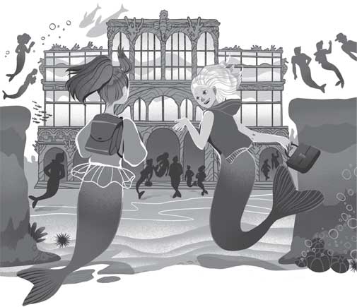 Русалки осторожно двинулись к месту посадки на скоростное течение, которое неслось мимо, точно быстрая река. Течение доставило бы их до школы очень быстро – им даже хвостом махнуть не понадобится. Но было и страшновато. Если не сесть в течение, как полагается, тебя отбросит прочь кувырком. Так что подруги медленно плыли вперед, притворяясь, что знают, что делают.