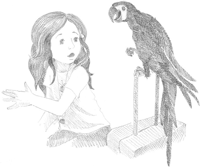 – Ну, раз ты уже совсем взрослая, у меня будет для тебя ответственное задание. Не могла бы ты присмотреть за Кики, пока мы с твоей мамой обсудим кое-какие дела зоопарка? – Дедушка протянул руку, и попугаиха грациозно спустилась по ней, перебирая когтистыми лапами.