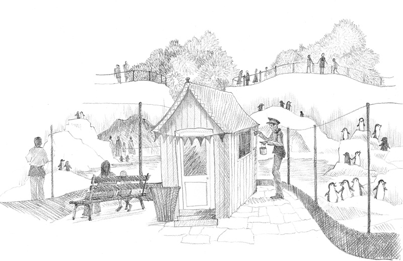 Управляющий указал на домик. На стенах были развешаны фотографии пингвинов, а также была закончена табличка, которую управляющий рисовал вчера.