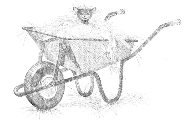 Вдруг солома в тачке зашевелилась. Зоуи с удивлением на неё взглянула, а затем тряхнула тачку. И тогда из сухих травинок показалась маленькая пушистая голова и блеснула пара больших золотистых глаз.