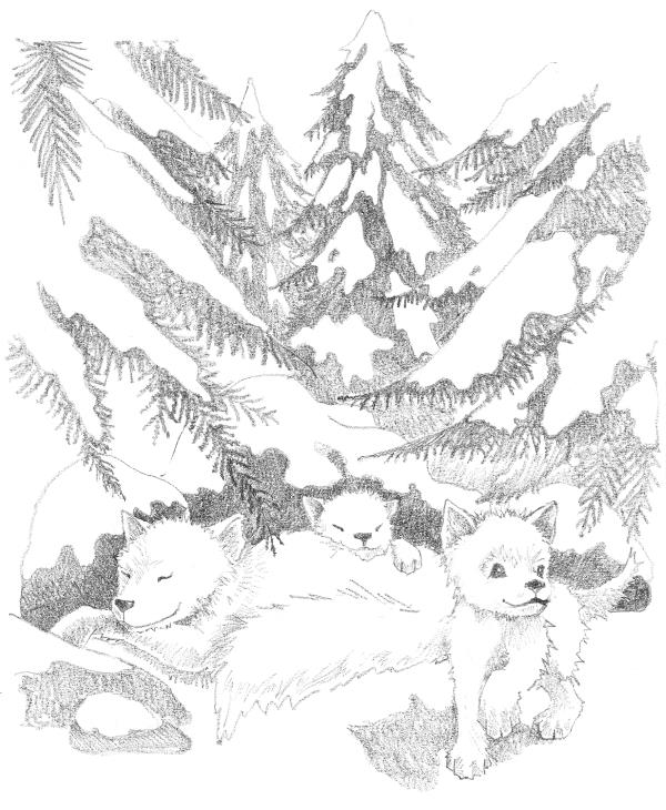 Они прошли мимо стаи зимородков и их лиственного дома у озера, а потом мимо обезьянок-капуцинов, живущих во влажном уголке джунглей. Рядом со следующим вольером собралась особенно большая толпа. Там живёт Луна – прекрасная арктическая волчица с пушистой, мягкой, белоснежной шубкой, угольно-чёрным носиком и голубыми глазами. В прошлом месяце у Луны родились щенки – малышка Стелла и озорник Сэм. Их дом – это заснеженная полянка, окружённая сверкающими льдом елями. Напротив ограды небольшой проём, через который посетители могут наблюдать за жизнью зверей. Луна и Сэм свернулись клубочками рядом, а егоза Стелла не спала и играла с пушистым маминым хвостом. Увидев Зоуи, она радостно тявкнула и бросилась к ограде. Девочка ей помахала. Если бы людей на дорожках было меньше, она бы остановилась поболтать с волчонком, но сейчас это было слишком рискованно.