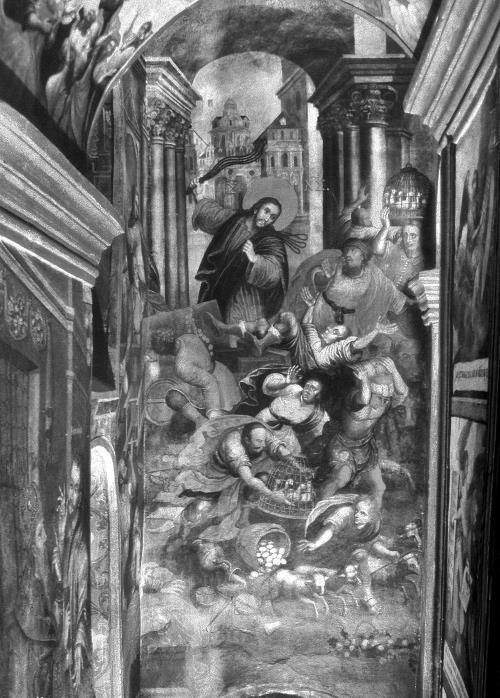 Изгнание торговцев из храма. Фреска, Троицкая церовь Киево-Печорской лавры, XVIII век