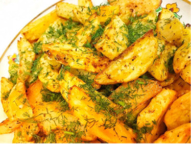 400 гр. Картофеля, отварного в мундире, нарезанного кубиками;