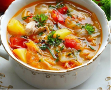 При подаче добавляем в каждую тарелку сметану и мелко нарезанную зелень.