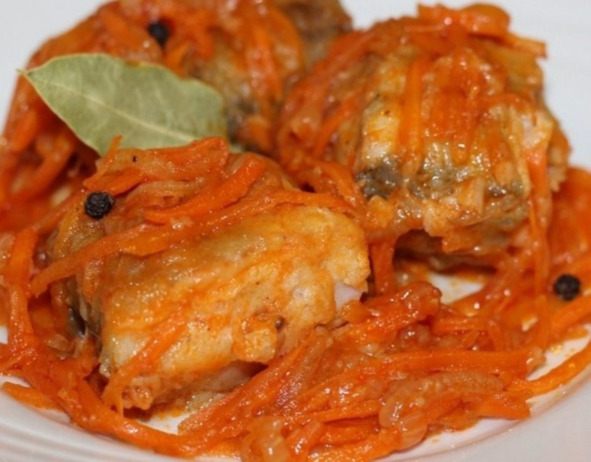 Нам понадобится:1 кг. Щуки, нарезанной порционными кусками;1—2 луковицы, нарезанные полукольцами, и морковь, натертая на терке;50 гр. Сливочного масла;1 стакан сметаны;50 гр. Сыра, натертого на терке;1 лавровый лист;4 перчика горошком и соль по вкусу;Сок половинки лимона.