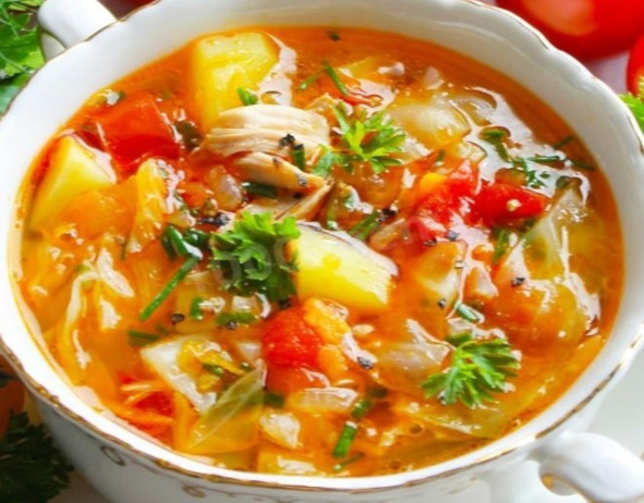Нам понадобится:500 гр. Мяса, нарезанного порционными кусочками;500 гр. Белокочанной или квашеной капусты, нашинкованной мелко;1 морковь, натертая на терке, и 1 луковица мелкорубленная;1ст. л. Томатной пасты или 2 помидора, нарезанные мелко;Картофель, нарезанный кубиками;Масло растительное;Зелень мелкорубленная и лавровый лист;Сметана;Пару зубчиков чеснока, пропущенных через пресс;Соль и черный молотый перчик.
