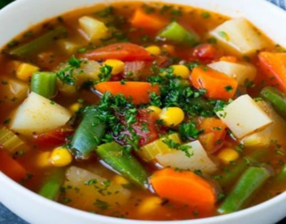 Нам понадобится:1 пакет любых замороженных овощей;4 картофелины, нарезанные кубиками;1 морковь, натертая на терке для корейской моркови;Пучок зелени мелкорубленной;Соль – по вкусу;Растительное масло;Сметана.