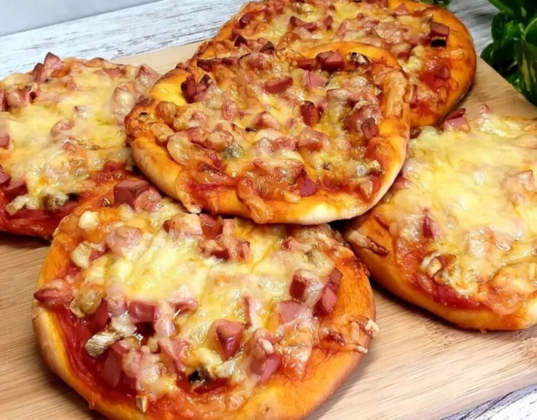 Пиццу следует выпекать в заранее разогретой духовке при температуре 200 градусов. В рецепте указано, что время приготовления составляет 20 минут, но у меня это заняло около 30—35 минут.