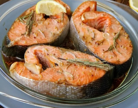 Нам понадобится:500—600 гр. Кижуча, нарезанного стейками;Растительное масло;1 ст. л. Меда;1 ч. л. Горчицы;Зубчик чеснока, пропущенный через пресс;1 ст. л. Сока лимона;Соль;Мука.