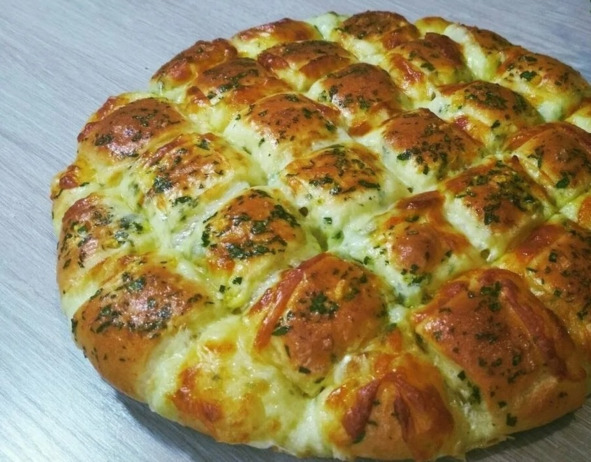 Нам понадобится:270 гр. Муки;1 яйцо;125 гр. Молока;70 гр. Сливочного масла;1 ч. л. Сухих дрожжей;15 гр. Сахара;1\2 ч. л. Соли;180 гр. Сыра «Моцарелла»;1—2 зубчика чеснока;Свежая петрушка.