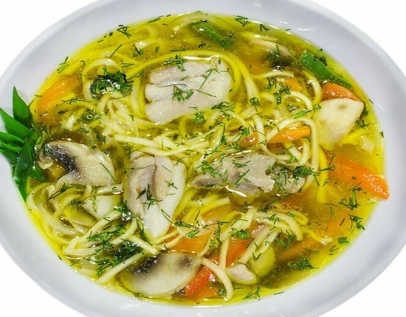 В конце добавляем лапшу и зажарку. Снимаем с огня и посыпаем зеленью.