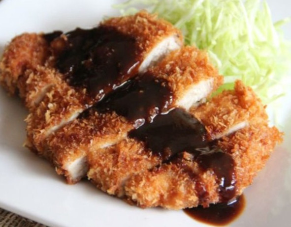 Тонкацу подаём с соусом и свежей мелко нарезанной капустой или рисом.
