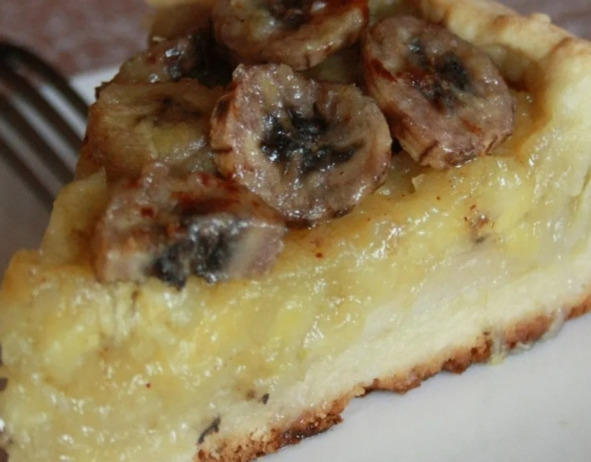 Нам понадобится:ДЛЯ ТЕСТА: 200 гр. Муки;1 яйцо;1 ст. л. Сахара;1 ч. л. Разрыхлителя;100 гр. Сливочного масла;ДЛЯ ЗАЛИВКИ: 200 гр. Сметаны;1 яйцо;2 ст. л. Муки;100 гр. Сахара;2 банана.