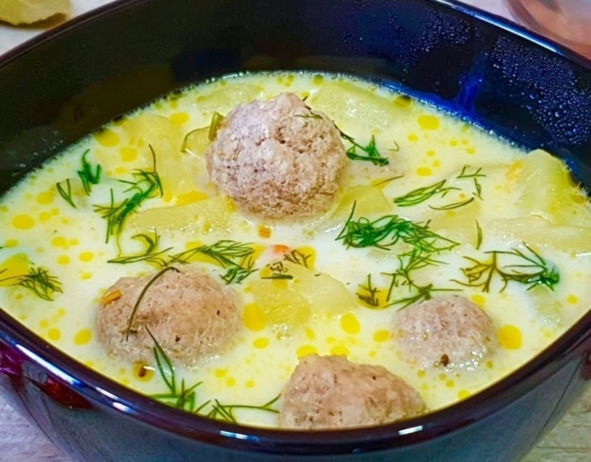 Суп с мясными фрикадельками и сливками