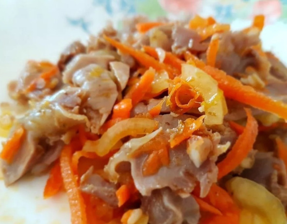 Куриные желудочки, жареные с луком и морковью