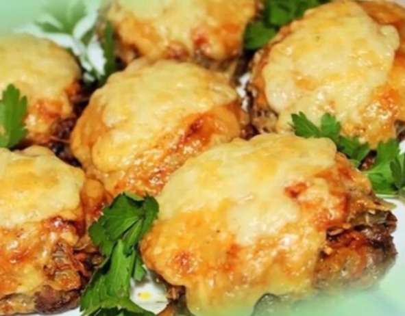 По истечении времени снимаем фольгу, посыпаем котлетки сыром и отправляем обратно в духовку на 10—15 минут.