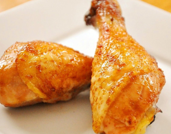 В отдельной ёмкости смешиваем лимонный сок, чеснок и мёд. Получившимся соусом поливаем куриные ножки и запекаем ещё 10 минут. В процессе приготовления периодически поливаем ножки соусом.