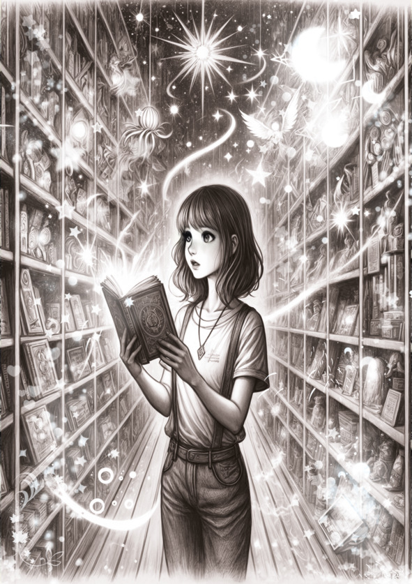 Вокруг все сверкало, будто звезды на небе зажглись, загораясь то тут, то там, исчезая и появляясь вновь. Полки заполнились новыми товарами. Особенно много было товаров на стеллажах с книгами: научные книги, учебники, исторические, строительные и любимые книги Элвы – с историями и сказками. Так и хотелось подойти и изучить каждую, не спеша листая и вчитываясь.