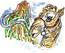 Невдалеке была огороженная площадка. Через некоторое время на эту площадку обратились все взоры. На нее выпустили быка и верблюда с налитыми кровью глазами. Они были выучены для боя. Трое мужчин справа, трое слева удерживали быка на железной цепи. Вывели быка на середину. С другой стороны шестеро мужчин привели верблюда.