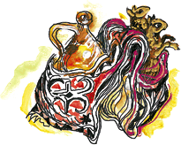 Лицо роженицы Айны Мелек было усталым и счастливым. Около нее стояли треножник и медный таз, полный воды. По древнему поверью, с ними женщина рожает легко. Фатьма Брюхатая покрыла таз чистой тряпицей. В одеяло Айны Мелек, в ее одежду она воткнула иголки – защита от сглаза. Потом Фатьма положила в банку луковицу, отнесла ее к дверям. Под подушкой Айны Мелек спрятала кусок хлеба и мяса.