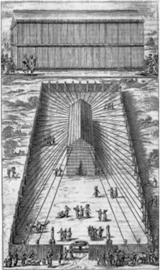 Ноев ковчег. Уже в первых главах Библии даётся подробное описание Ноева ковчега спасения. В Библии говорится, что «чертёж» ковчега был дан Ною свыше со всеми подробностями и списком материалов для строительства, и, главное, размерами. Интересно, что размеры ковчега были даны в «локтях» – самых первых примитивных единицах человеческого измерения («И сделай его так: длина ковчега триста локтей, ширина его пятьдесят локтей, а высота его тридцать локтей» (Быт. 6:15)). Таким образом, ковчег имел прямоугольную форму, близкую к мандале, и не был похож на лодку или корабль, как принято его изображать. Это подтверждает и само название – «ковчег», соответствующее еврейскому тева́ – коробка, сундук.