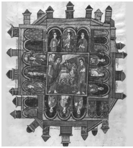 Примечательно, что на всех картах с подобным сюжетом вход в Дом Бога изображался в виде традиционной для средневековых крепостей надвратной башни.