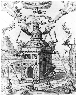 Башня Братства Розы и Креста. Наглядным примером символизма Храма может служить замечательная гравюра из книги с говорящим названием: «Зерцало Мудрости Розо-Крестовой, Сиречь Новейшее Откровение о Коллегии и аксиомах весьма просвещённого Братства Христова Креста Розы», опубликованной в 1618 году.