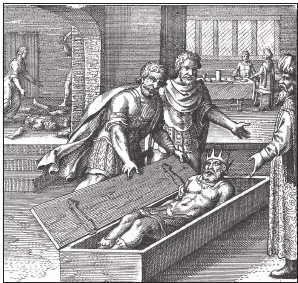 Уже при царе Ровоаме, преемнике Соломона, Адонирам был послан переговорщиком к восставшим Десяти коленам Израилевым. Но министр пострадал – его побили камнями. Возможно, и имя, и мученическая смерть Адонирама-мытника и его связь со строительством Храма послужила мотивом объединить его с Хирамом Абифом.