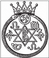 На эмблеме присутствуют все необходимые детали пантакля: Оуробор, который имитирует двойную замкнутую окружность; геометрическая фигура (гексаграмма); вращающийся крест (свастика). Буквы еврейского алфавита содержат мыслеформу Цели в виде девиза «Нет религии выше истины».