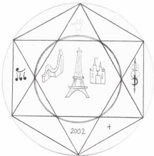 Образец пантакля: поездка в Париж. Поездка состоялась через три месяца после энергетической работы над пантаклем. К рабочему магическому пантаклю был добавлен второй круг и факсимиле.