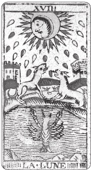 Луна Николя Конвера. Колода Николя Конвера (в русской версии «Древнее Марсельское Таро»), созданная в 18 веке, считается классикой Марсельского Таро. Конвер в своей колоде обобщает основные традиции Марсельской серии: на карте присутствуют две пары башен и волков, воющих на Луну, а также омар.