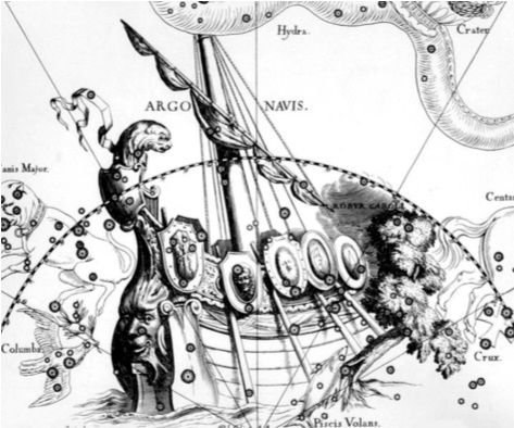 Считается, что созвездия Парус, Киль, Корма, Компас, составляющие части корабля, названы в честь «Арго».