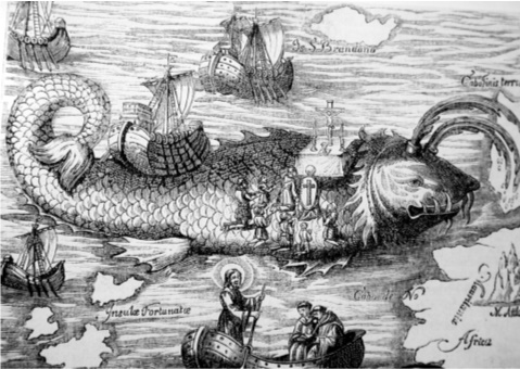 Прототип XII века. Святой Брендан. Одной из популярнейших книг средневековья, первые литературные редакции которой восходят к IX–XI векам, была книга «Мореплавание святого Брендана». Начиная с XII века, когда книга была переведена на ряд языков, в том числе английский, французский и итальянский, история путешествия святого Брендана, предпринятая им и 60 его спутниками в поиске «Земли обетованной», получает широкое распространение. «Мореплавание святого Брендана» постоянно переиздавалось, а к 1476 году было дополнено гравюрами, а позже и красочными иллюстрациями, производящими ещё и визуальное впечатление на воображение читателей. В XV веке в одной лишь Германии книга выдержала одиннадцать изданий.