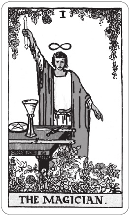 Лемниската снова возникнет в Таро Уэйта, но уже в карте Сила, и тоже будет относиться к энергии Стихий, но проявленным уже в материале. Мы ещё вернёмся к этому вопросу в магии VIII Аркана, а пока остановимся на том, что лемниската отражает спиралевидный принцип движения энергии, тему которого автор Таро разглядел в концепции I Аркана.